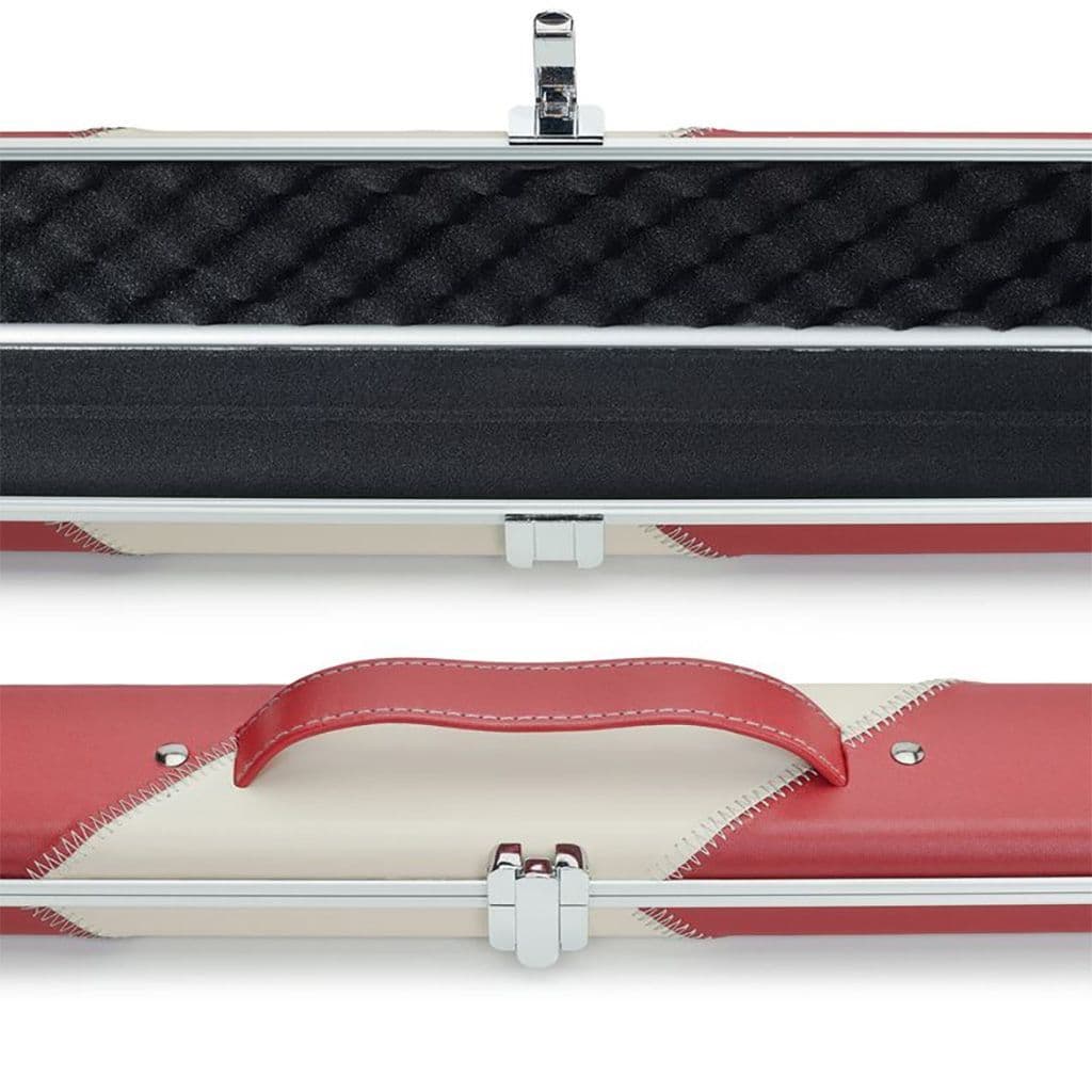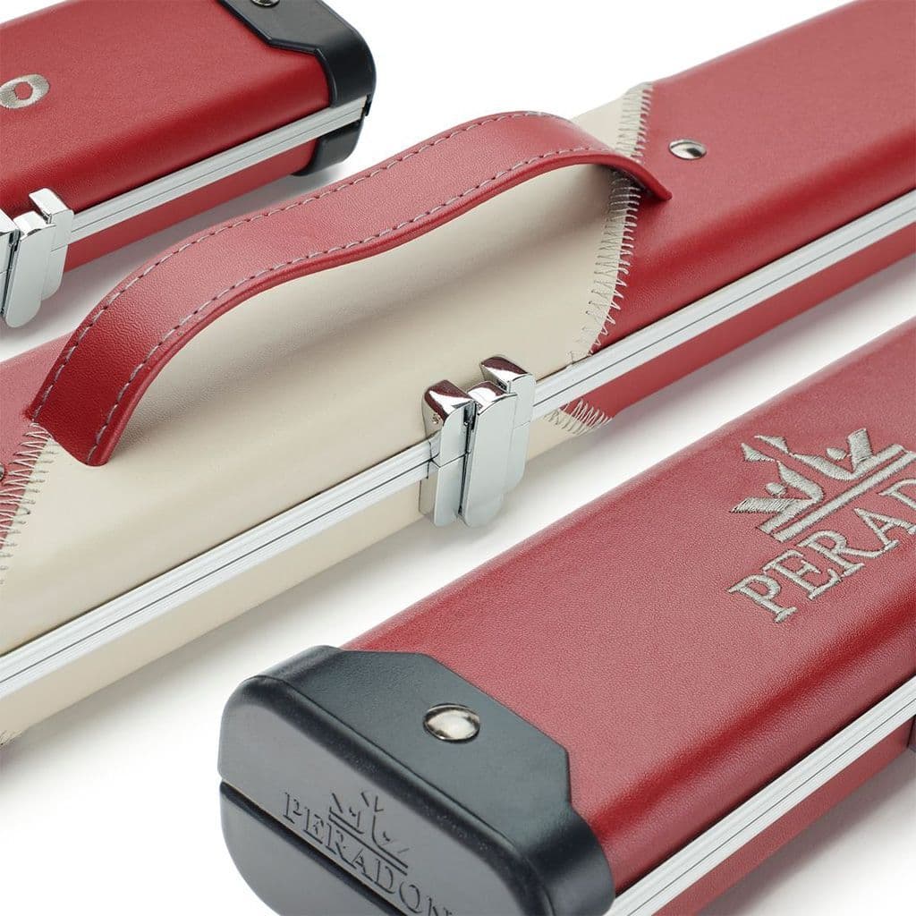 Home / Cue Cases / 1pc Cue Cases View more images Product Description Halo double cues case for 2 x 1pc cues Halo cases are of aluminium construction and offer both maximum cue protection and superb looks. The exterior is upholstered with hard wearing leather look material to create a very attractive cue case. The hinge is an integral part of the shape of the case making it extremely robust. The catches are of the highest quality with a highly polished chrome finish.. The interior features a deluxe foam to hold the cue securely in place. As the foam interior has two channels the case will also hold any screw in extensions that may also be required (or even two cues). Interior Length 59 ¼" (150.5cm) Exterior LxWxH 59 ¾" (152cm) x 3"(7.5cm) x 1 ¾" (4.5cm) Construction Aluminium Exterior Material 'Leather look' material Interior Material Foam interior All sizes are nominal. If you would prefer a narrower Halo case that will only hold one cue please see the Halo slim case. Specifications Brand Peradon Description Halo double cues case for 2 x 1pc cues Halo cases are of aluminium construction and offer both maximum cue protection and superb looks. The exterior is upholstered with hard wearing leather look material to create a very attractive cue case. The hinge is an integral part of the shape of the case making it extremely robust. The catches are of the highest quality with a highly polished chrome finish.. The interior features a deluxe foam to hold the cue securely in place. As the foam interior has two channels the case will also hold any screw in extensions that may also be required (or even two cues). Interior Length 59 ¼" (150.5cm) Exterior LxWxH 59 ¾" (152cm) x 3"(7.5cm) x 1 ¾" (4.5cm) Construction Aluminium Exterior Material 'Leather look' material Interior Material Foam interior All sizes are nominal. If you would prefer a narrower Halo case that will only hold one cue please see the Halo slim case. Attributes Brand Peradon Delivery & Returns 1pc Peradon Halo double cue case - Red & Cream striped (holds 2 x 1pc cues) Item in Stock £110.00 Login to add this product to your wishlist.