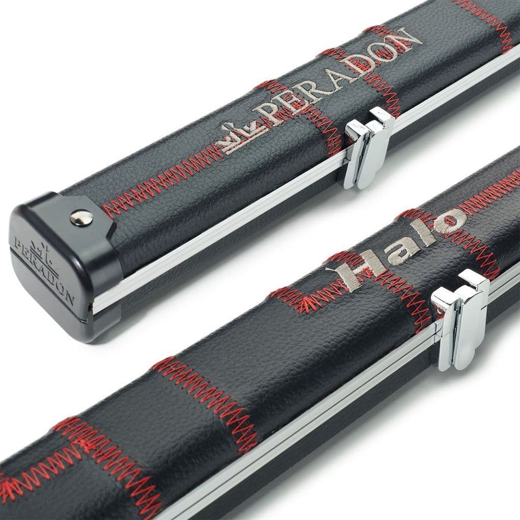 Home / Cue Cases / 1pc Cue Cases View more images Product Description Halo Thin Case for One Piece Cue Halo cases are of aluminium construction and offer both maximum cue protection and superb looks. The exterior is upholstered with hard wearing leather look material to create a very attractive cue case. The hinge is an integral part of the shape of the case making it extremely robust. The catches are of the highest quality with a highly polished chrome finish. The interior features a deluxe foam to hold the cue securely in place. Many players like this case as holding just one cue it is very thin and easy to handle. If you would prefer a wider Halo case with more interior channels see the Halo Double to hold 2 cues or the Extra Wide Halo Plus for 3 cues. Interior Length 59 ¼" (150.5cm) Exterior LxWxH 59 ¾" (152cm) x 2"(5cm) x 1 ¾" (4.5cm) Construction Aluminium Exterior Material 'Leather look' material Interior Material Foam interior All sizes are nominal. Specifications Brand Peradon Description Halo Thin Case for One Piece Cue Halo cases are of aluminium construction and offer both maximum cue protection and superb looks. The exterior is upholstered with hard wearing leather look material to create a very attractive cue case. The hinge is an integral part of the shape of the case making it extremely robust. The catches are of the highest quality with a highly polished chrome finish. The interior features a deluxe foam to hold the cue securely in place. Many players like this case as holding just one cue it is very thin and easy to handle. If you would prefer a wider Halo case with more interior channels see the Halo Double to hold 2 cues or the Extra Wide Halo Plus for 3 cues. Interior Length 59 ¼" (150.5cm) Exterior LxWxH 59 ¾" (152cm) x 2"(5cm) x 1 ¾" (4.5cm) Construction Aluminium Exterior Material 'Leather look' material Interior Material Foam interior All sizes are nominal. Attributes Brand Peradon Delivery & Returns 1pc Peradon Halo Slim cue case - Black with Red stitching (holds 1 x 1pc cue) Item in Stock £110.00 Login to add this product to your wishlist.