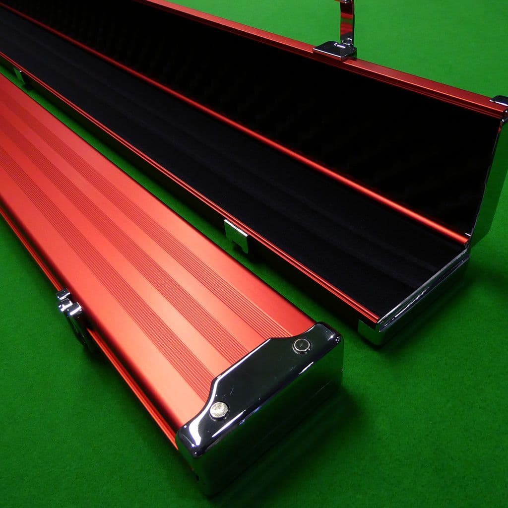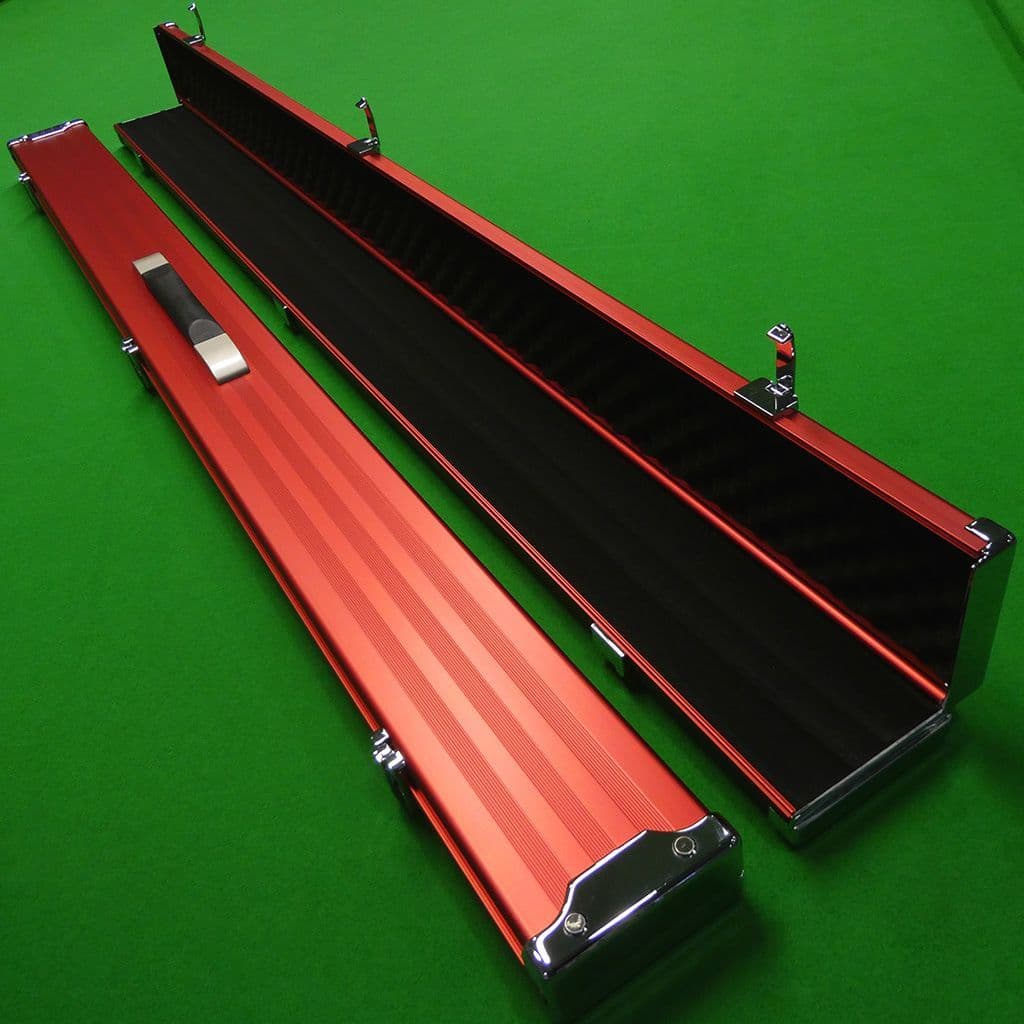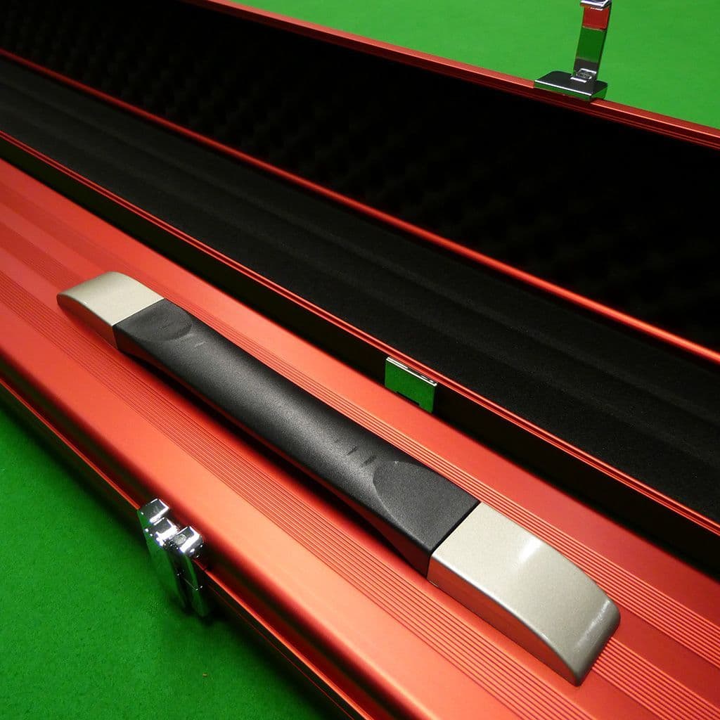 Home / Cue Cases / 3/4 Cue Cases View more images Product Description The Pro-Line cases are premium aluminium snooker/pool cue cases for the serious player. These cases feature a matte red finish with chrome plated metal end caps for increased protection 3 latches for added protection. Travel in peace knowing your cue is well protected with a Pro-Line case. Features: Approx 47.5" in length with metal ends for added protection 3 sections in this case which comfortably Holds 2 x 3/4 cues + Mini butts Maximum shaft length 47.25" Retractable handle for convenience in carrying 3 metal latches to ensure cues are secured (not lockable) Moulded foam interior with internal dividers that keeps shafts and butts separate and protected. Specifications Brand Craftsman Description The Pro-Line cases are premium aluminium snooker/pool cue cases for the serious player. These cases feature a matte red finish with chrome plated metal end caps for increased protection 3 latches for added protection. Travel in peace knowing your cue is well protected with a Pro-Line case. Features: Approx 47.5" in length with metal ends for added protection 3 sections in this case which comfortably Holds 2 x 3/4 cues + Mini butts Maximum shaft length 47.25" Retractable handle for convenience in carrying 3 metal latches to ensure cues are secured (not lockable) Moulded foam interior with internal dividers that keeps shafts and butts separate and protected. Attributes Brand Craftsman Delivery & Returns 3/4 Pro Line Red Aluminium cue case wide (3 Section) Item in Stock £95.00 Login to add this product to your wishlist.
