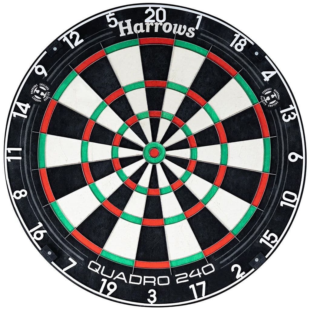 Home / Dartboards & Equip / Dartboards View more images Product Description A true darting cult classic has returned; Quadro 240 dartboard is back. Last available in the mid 1990's, darts fans around the world have clamoured for this iconic board to make a return for more than 30 years. This modern version of the Quadro 240 board features; Ultra-thin hardened wire Fast healing ‘SMART’ sisal technology ‘CLEAR SIGHT’ number ring, completing a truly modern look for this instant classic The iconic dartboard is now available on DartConnect! The iconic board is now compatible with the DartConnect app letting you score your games with friends. Quadro Scoring features: 240 Maximum Score Quick Key Calculator keypad for fast 4X score entry Quadro-based suggested finishes Specifications Brand Harrows Description A true darting cult classic has returned; Quadro 240 dartboard is back. Last available in the mid 1990's, darts fans around the world have clamoured for this iconic board to make a return for more than 30 years. This modern version of the Quadro 240 board features; Ultra-thin hardened wire Fast healing ‘SMART’ sisal technology ‘CLEAR SIGHT’ number ring, completing a truly modern look for this instant classic The iconic dartboard is now available on DartConnect! The iconic board is now compatible with the DartConnect app letting you score your games with friends. Quadro Scoring features: 240 Maximum Score Quick Key Calculator keypad for fast 4X score entry Quadro-based suggested finishes Attributes Brand Harrows Delivery & Returns Harrows Quadro 240 Dartboard Item in Stock £57.95 Login to add this product to your wishlist.