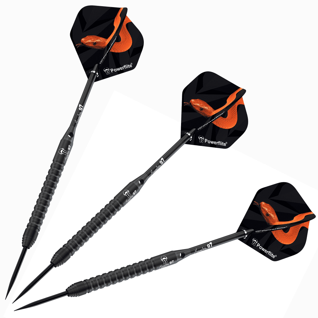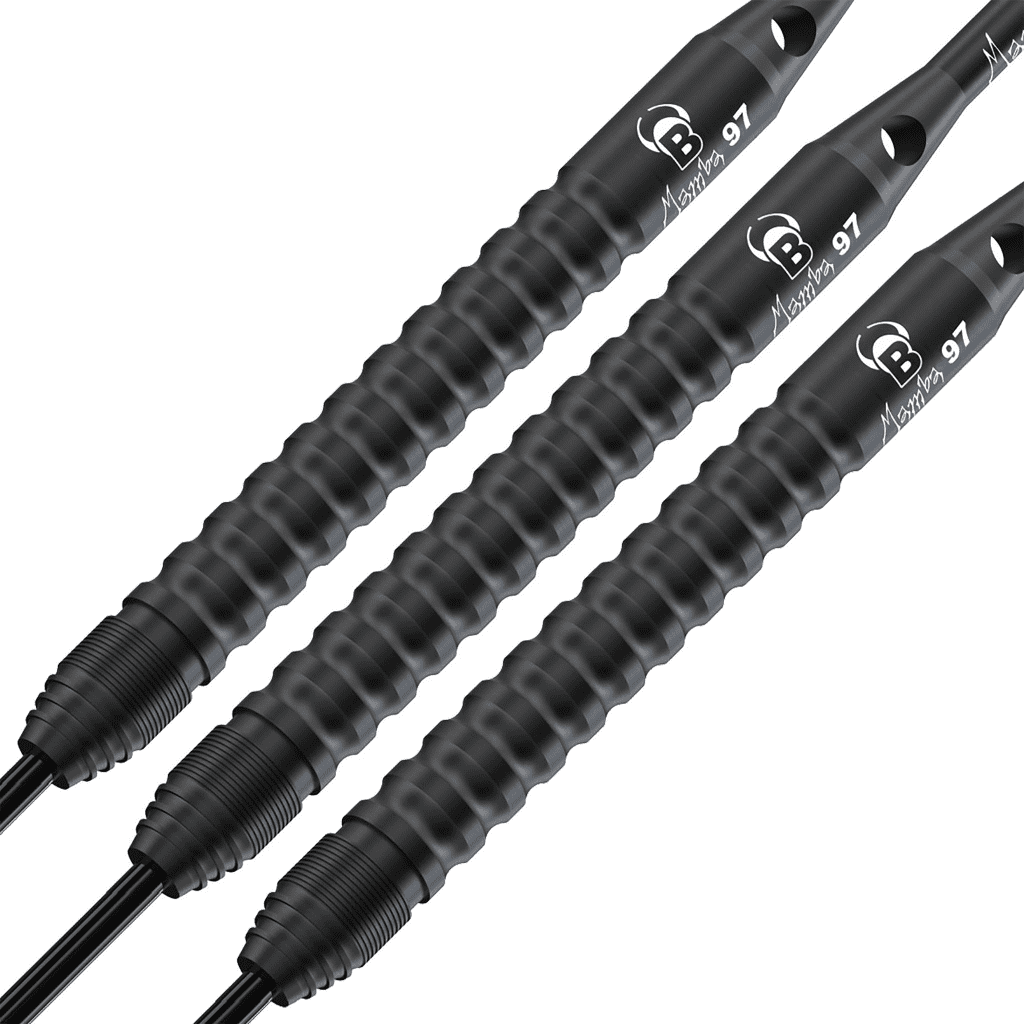 Home / Darts / Bull's Darts Germany Product Description The Mamba 97 is made in unique 97% tungsten quality. The barrel with a black titanium coating guarantees the perfect grip for the highest possible control of the dart. The M3 has an extremely slim barrel throughout. The largest part of the barrel has an L-grip, and in the front area there is also a narrow area with a slim shark grip, which is particularly suitable for players who hold the barrel far forward. With engraved BULL'S logo and Mamba 97 lettering. Barrel weights & dimensions: 21g - 6.0mm x 51mm 23g - 5.9mm x 54mm 25g - 6.3mm x 54mm 27g - 6.3mm x 54mm In stock ready for dispatch, Or visit our darts shop and Try Before You Buy Specifications Brand Bull's Description The Mamba 97 is made in unique 97% tungsten quality. The barrel with a black titanium coating guarantees the perfect grip for the highest possible control of the dart. The M3 has an extremely slim barrel throughout. The largest part of the barrel has an L-grip, and in the front area there is also a narrow area with a slim shark grip, which is particularly suitable for players who hold the barrel far forward. With engraved BULL'S logo and Mamba 97 lettering. Barrel weights & dimensions: 21g - 6.0mm x 51mm 23g - 5.9mm x 54mm 25g - 6.3mm x 54mm 27g - 6.3mm x 54mm In stock ready for dispatch, Or visit our darts shop and Try Before You Buy Attributes Brand Bull's Delivery & Returns Mamba 97 M3 darts set 97% Tungsten Item in Stock Weight 21g 23g 27g RRP: £0.00 £56.95 Login to add this product to your wishlist.