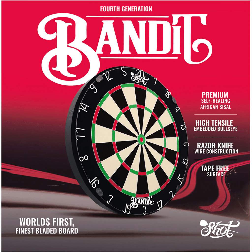In 1992, Shot Darts revolutionized the dartboard industry with the creation of the world’s first bladed bristle dartboard, the Bandit, at their factory in New Zealand. Today, the Bandit’s legacy continues to influence the standards of dartboards today. Now, the Bandit Fourth Generation takes innovation to the next level, delivering unmatched durability and playability.