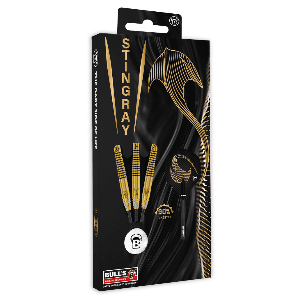 Home / Darts / Bull's Darts Germany View more images Product Description The popular Stingray series has a fresh look. Newly equipped with pressed finger grip tips, it replaces the previous interchangeable tips with B5 thread. This further development ensures even better grip and control when throwing. Made from high-quality 90% tungsten and in an elegant gold finish, the Stingray series not only impresses in terms of performance, but also visually. The Stingray ST3 impresses with its unique teardrop shape and offers outstanding control and precision. A classic ring grip in the rear area ensures a secure hold, while the front of the barrel ensures additional grip and stability with a combination of ring grip and axial grip. Refined with the engraved Stingray and Bulls logo, the ST3 combines elegant design with first-class performance. Barrel weights & dimensions 22g - 6.50mm x 54mm 24g - 6.80mm x 54mm 26g - 7.00mm x 54mm In stock ready for dispatch, Or visit our darts shop and Try Before You Buy Specifications Brand Bull's Description The popular Stingray series has a fresh look. Newly equipped with pressed finger grip tips, it replaces the previous interchangeable tips with B5 thread. This further development ensures even better grip and control when throwing. Made from high-quality 90% tungsten and in an elegant gold finish, the Stingray series not only impresses in terms of performance, but also visually. The Stingray ST3 impresses with its unique teardrop shape and offers outstanding control and precision. A classic ring grip in the rear area ensures a secure hold, while the front of the barrel ensures additional grip and stability with a combination of ring grip and axial grip. Refined with the engraved Stingray and Bulls logo, the ST3 combines elegant design with first-class performance. Barrel weights & dimensions 22g - 6.50mm x 54mm 24g - 6.80mm x 54mm 26g - 7.00mm x 54mm In stock ready for dispatch, Or visit our darts shop and Try Before You Buy Attributes Brand Bull's Delivery & Returns Stingray ST3 darts set 90% Tungsten Item in Stock Weight 22g 26g RRP: £0.00 £79.95 Login to add this product to your wishlist.