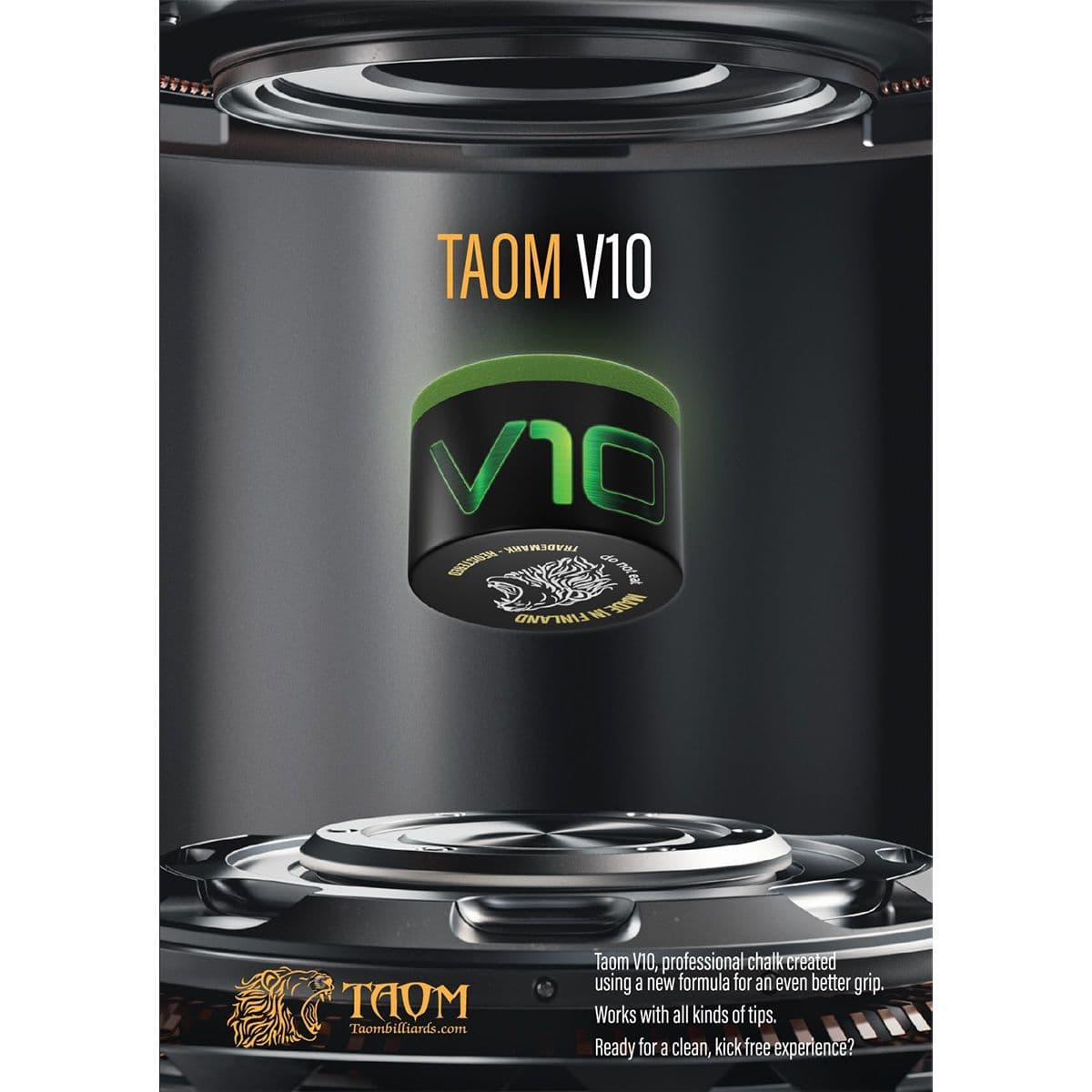 Home / Tips & Chalk / Chalk Product Description Taom V10 professional chalk is the latest formula from Taom engineers. This chalk gives an ultimate grip with a super clean experience. V10 is developed with world’s top professional players. Works with all kind of tips, hard to soft. The chalk can be used in any cuesports. The mission was to create even stronger grip but with less residue, and that’s what we did. "V10 I feel is the best chalk I have used since turning professional! It gives very good grip on the cue ball and the cleanest chalk ever" - Mark Selby World Nr. 1 "I've used every chalk Taom have brought out and every time they've got better and better. The company listen to the feedback from the players and improve it time and time again. The V10 (which I used at 2021 World Championships) is the best yet and been using it every since I first tried it" - Stuart Bingham, Snooker World Champion "Best chalk ever made, I totally love it - John Higgins, 4 x Snooker World Champion "V10 is the next step in Taom evolutionary story. Get even more grip without sacrificing control and clean contact " - Mika Immonen, 3 x Pool World Champion 1 x Individual Piece of Green Taom V10 Chalk Specifications Brand Taom Description Taom V10 professional chalk is the latest formula from Taom engineers. This chalk gives an ultimate grip with a super clean experience. V10 is developed with world’s top professional players. Works with all kind of tips, hard to soft. The chalk can be used in any cuesports. The mission was to create even stronger grip but with less residue, and that’s what we did. "V10 I feel is the best chalk I have used since turning professional! It gives very good grip on the cue ball and the cleanest chalk ever" - Mark Selby World Nr. 1 "I've used every chalk Taom have brought out and every time they've got better and better. The company listen to the feedback from the players and improve it time and time again. The V10 (which I used at 2021 World Championships) is the best yet and been using it every since I first tried it" - Stuart Bingham, Snooker World Champion "Best chalk ever made, I totally love it - John Higgins, 4 x Snooker World Champion "V10 is the next step in Taom evolutionary story. Get even more grip without sacrificing control and clean contact " - Mika Immonen, 3 x Pool World Champion 1 x Individual Piece of Green Taom V10 Chalk Attributes Brand Taom Delivery & Returns Taom V10 Chalk Green Item in Stock £16.95 Login to add this product to your wishlist.