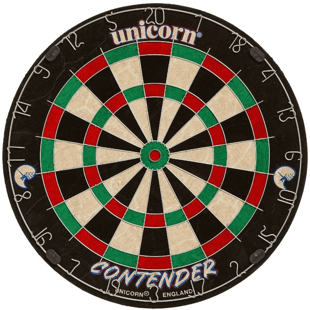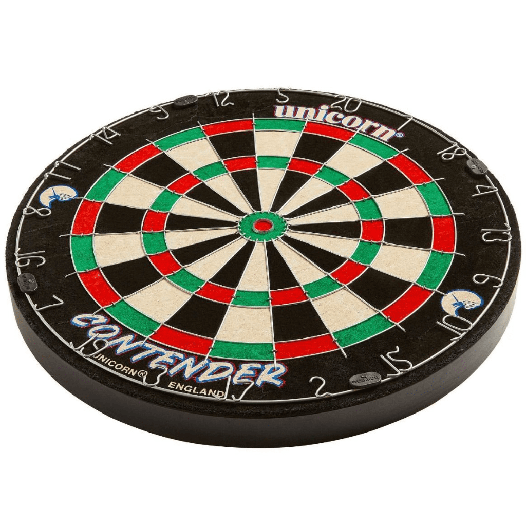 Home / Dartboards & Equip / Dartboards Product Description The Unicorn Contender Board is the ultimate starter board. The Contender Dartboard is designed for newcomers to darts to get maximum enjoyment from the incredible game we know and love. When starting out, hitting the winning double or getting close to treble 20 can seem impossible, but the Contender board makes it twice as likely! What's the point in playing a game of darts if you can't enjoy it? The Contender board will increase scoring, decrease frustration and make you more likely to come back and play again! Once you feel confident that you can hit your targets, then you're ready to progress to a traditional sized dartboard, of which Unicorn have a variety to suit every player. 50% larger doubles and trebles for maximum scoring and enjoyment 25% bigger outer bullseye High quality round wire construction SuperSlim™ wire fasteners to increase playing area Staple free Bullseye Competition quality bristle board. Specifications Brand Unicorn Description The Unicorn Contender Board is the ultimate starter board. The Contender Dartboard is designed for newcomers to darts to get maximum enjoyment from the incredible game we know and love. When starting out, hitting the winning double or getting close to treble 20 can seem impossible, but the Contender board makes it twice as likely! What's the point in playing a game of darts if you can't enjoy it? The Contender board will increase scoring, decrease frustration and make you more likely to come back and play again! Once you feel confident that you can hit your targets, then you're ready to progress to a traditional sized dartboard, of which Unicorn have a variety to suit every player. 50% larger doubles and trebles for maximum scoring and enjoyment 25% bigger outer bullseye High quality round wire construction SuperSlim™ wire fasteners to increase playing area Staple free Bullseye Competition quality bristle board. Attributes Brand Unicorn Delivery & Returns Unicorn Contender Dartboard Item in Stock £31.95 Login to add this product to your wishlist.