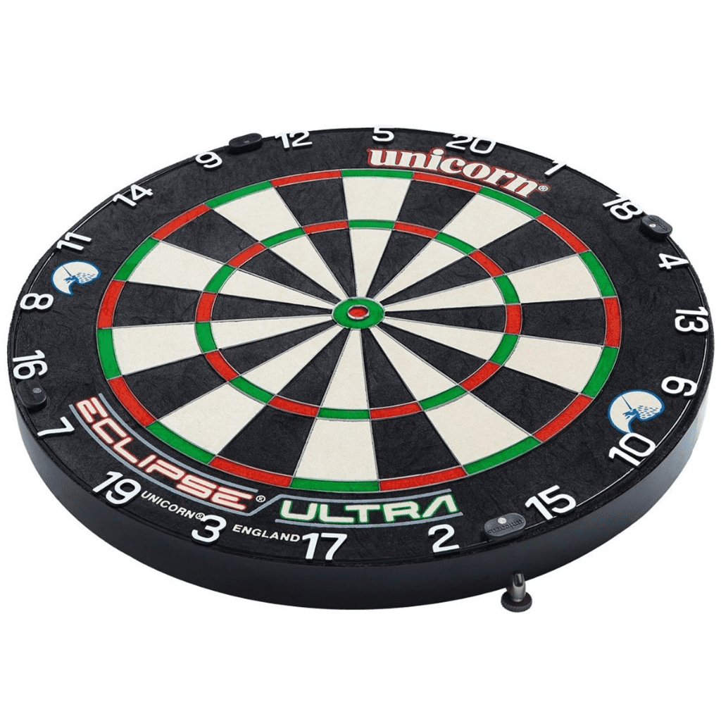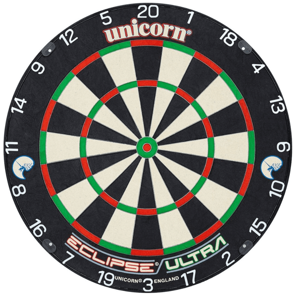 Home / Dartboards & Equip / Dartboards View more images Product Description The new Eclipse ULTRA Dartboard is the latest in cutting-edge technology from the World's most famous Dartboard and Darts manufacturer. Unicorn Darts was the official supplier of all PDC dartboards on television from 1997-2022 The Eclipse ULTRA Dartboard has been specifically engineered to maximise your darting experience thanks to a range of new features designed to improve scoring and durability. The ULTRA board has two state of the art features designed to maximise scoring and reduce rejected darts in critical areas thanks to the ULTRA Spider which is 33% less embedded in the doubles and trebles. The new ULTRA Bullseye also has a 33% less embedded Bullseye and strategic orientation for higher 50/25 hit ratio. The new ULTRA Sisal features upgraded processing and finishing for improved recovery and durability so your board lasts longer and looks better. The new ULTRA-Vis number ring provides additional clarity and focus, particularly when using lighting ULTRA Sisal ULTRA Spider ULTRA Bullseye ULTRA-Vis Number Ring Championship quality bristle dartboard Tournament regulation segments Staple-free construction Includes Unilock levelling system Ultra-slim wire with no external legs Specifications Brand Unicorn Description The new Eclipse ULTRA Dartboard is the latest in cutting-edge technology from the World's most famous Dartboard and Darts manufacturer. Unicorn Darts was the official supplier of all PDC dartboards on television from 1997-2022 The Eclipse ULTRA Dartboard has been specifically engineered to maximise your darting experience thanks to a range of new features designed to improve scoring and durability. The ULTRA board has two state of the art features designed to maximise scoring and reduce rejected darts in critical areas thanks to the ULTRA Spider which is 33% less embedded in the doubles and trebles. The new ULTRA Bullseye also has a 33% less embedded Bullseye and strategic orientation for higher 50/25 hit ratio. The new ULTRA Sisal features upgraded processing and finishing for improved recovery and durability so your board lasts longer and looks better. The new ULTRA-Vis number ring provides additional clarity and focus, particularly when using lighting ULTRA Sisal ULTRA Spider ULTRA Bullseye ULTRA-Vis Number Ring Championship quality bristle dartboard Tournament regulation segments Staple-free construction Includes Unilock levelling system Ultra-slim wire with no external legs Attributes Brand Unicorn Delivery & Returns Unicorn Eclipse Ultra Bristle Dartboard - with Unilock Item in Stock £59.95 Login to add this product to your wishlist.